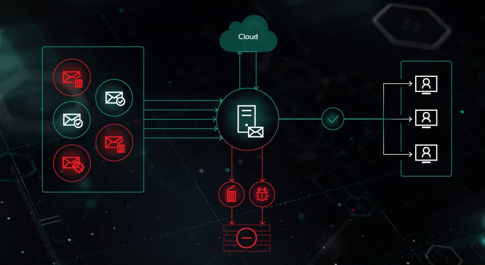 Intelligente, Cloud-basierte Spam-Filter für Mail-Server auf Basis von Microsoft Exchange und Linux arbeiten in Echtzeit und sind so in der Lage, den Datenverkehr aufgrund von unerwünschten Nachrichten erheblich zu reduzieren.
