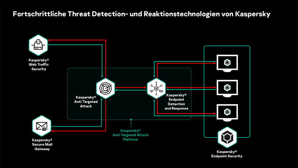 Die Zwei-Wege-API-Integration mit Kaspersky Anti Targeted Attack ermöglicht sowohl eine erweiterte Analyse von Webobjekten als auch eine automatisierte Reaktion, die die "Kill Chain" eines zielgerichteten Angriffs unterbrechen kann.