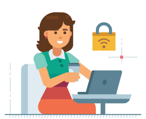 Sichere Verbindung (VPN) Ermöglicht privates Surfen in der Öffentlichkeit durch Aktivieren des sicheren VPN, wenn das öffentliche WLAN unsicher ist.