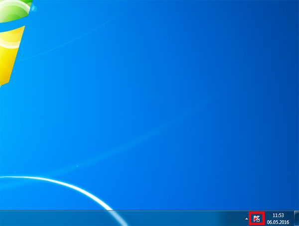 Öffnen Sie die Kaspersky-Anwendung, indem Sie unten rechts auf das „K“-Symbol klicken.