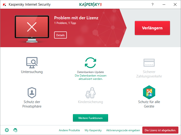 Hier können Sie Ihre bestehende Kaspersky-Lizenz verlängern. Alternativ können Sie auch am Ende dieser Seite einen neuen Lizenzcode erwerben.