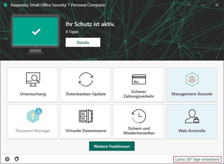 Öffnen Sie die Anwendung Kaspersky Small Office Security