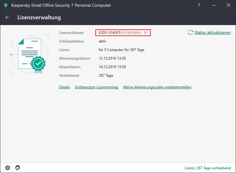 Verlängern Sie jetzt, um sicherzustellen, dass Ihr Unternehmen auch weiterhin geschützt bleibt. Geben Sie einfach Ihre Lizenzinformationen ein, um eine Verlängerung für bestehende Kunden zum Sonderpreis zu erhalten. Den folgenden Bildschirmfotos können Sie entnehmen, wo diese Informationen zu finden sind.