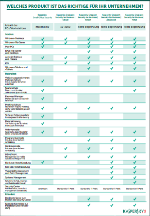 Vergleichen Sie die Sicherheitsmodelle von Kaspersky Next für Unternehmen und wählen Sie das richtige Produkt für Ihre Anforderungen