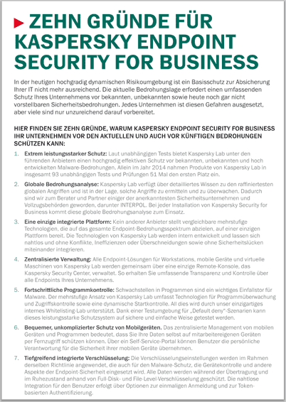 Eine robuste Sicherheitslösung, die fortschrittliches maschinelles Lernen mit der umfassenden Threat Intelligence von Kaspersky kombiniert.