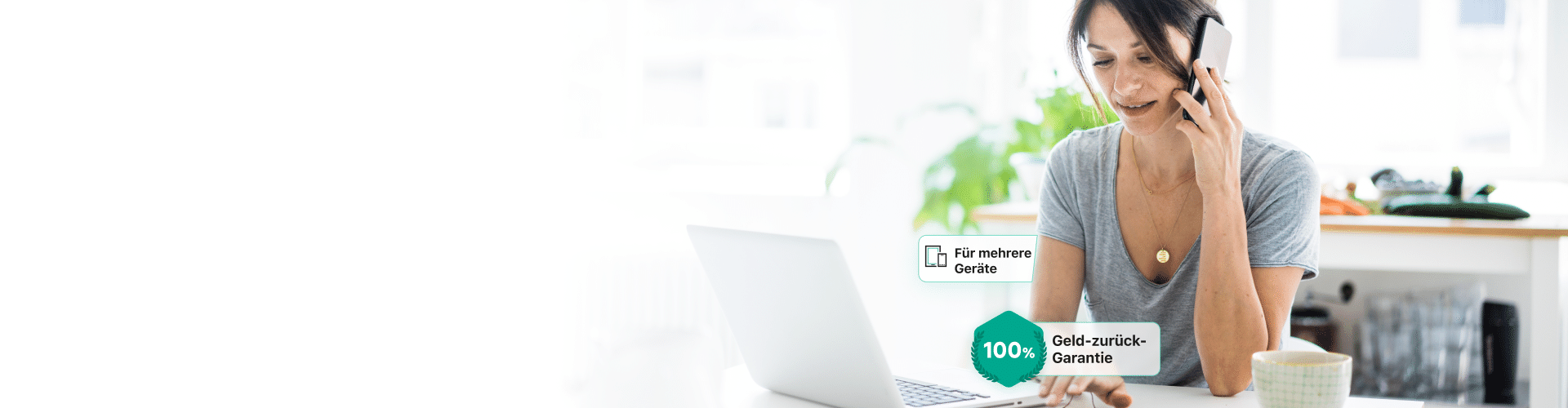 Mit nur einem Abonnement sind Sie auf allen Ihren Geräten geschützt – von PC über Laptop und Tablet bis hin zum Smartphone. Jetzt testen mit unserer 30 Tage Geld-zurück-Garantie.